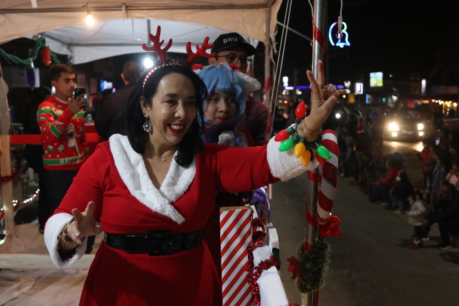 Playas de Rosarito,B.C. 18 de diciembre de 2023.- Entre luces, villancicos y alegría, más de 5 mil rosaritenses disfrutaron del Desfile Navideño 2023, encabezado por la alcaldesa, Araceli Brown Figueredo, que se llevó a cabo desde la Plaza San Fernando, pasando por el bulevar Benito Juárez y Guerrero hasta llegar a la Casa Municipal.