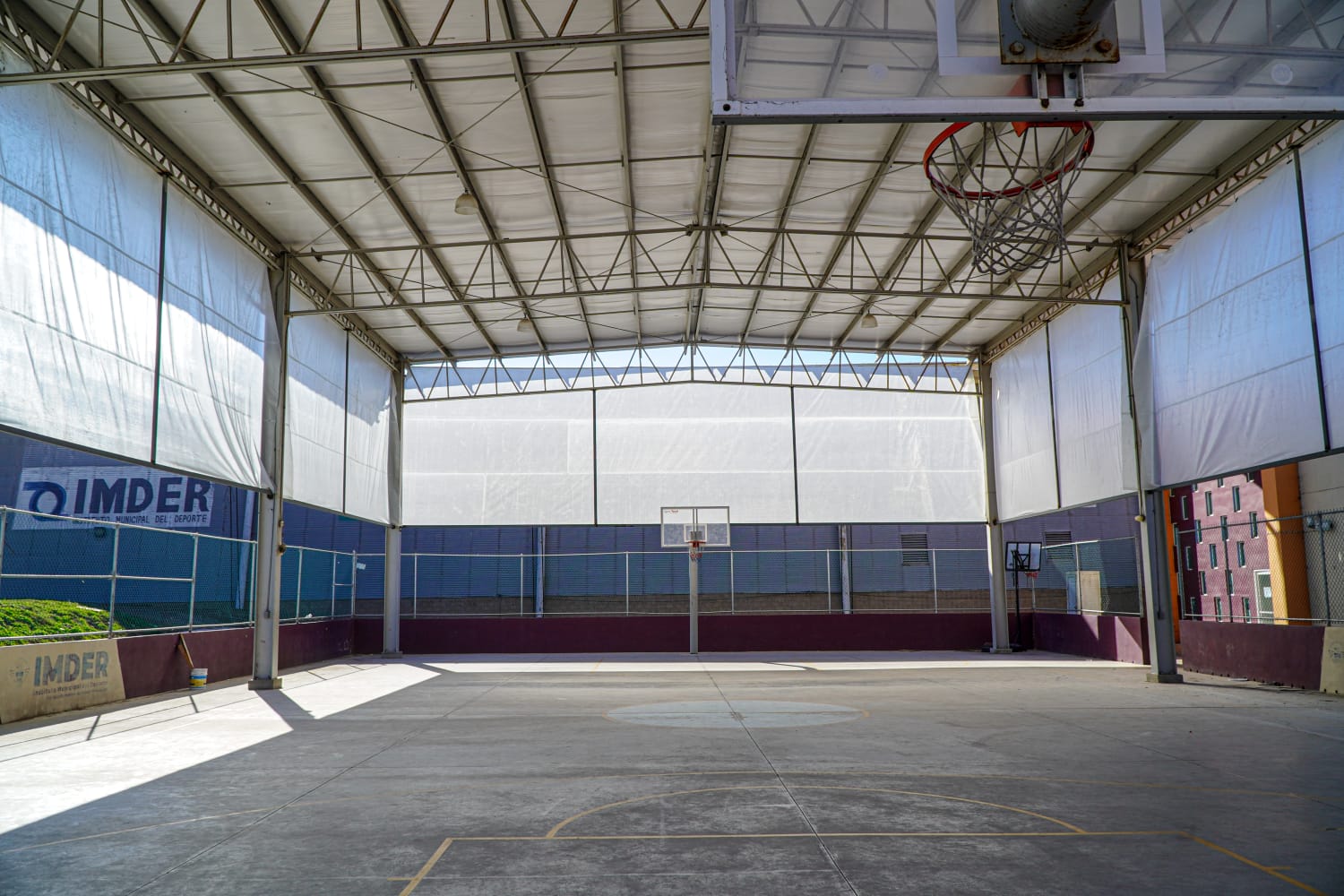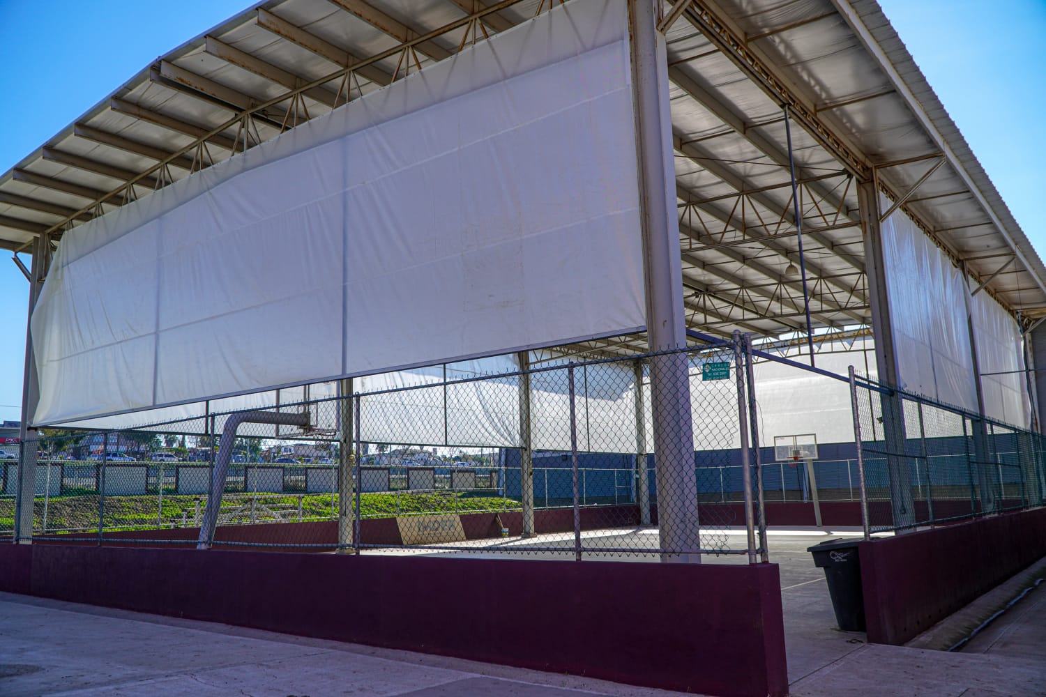 Enrique Gutiérrez Tinoco, director de dicha institución del IX Ayuntamiento, informó que las obras consisten en la colocación de cortinas en la cancha externa de basquetbol, con recursos propios, con el objetivo de proteger a la comunidad que entrena en dicho recinto en temporadas de frío, lluvias y vientos.