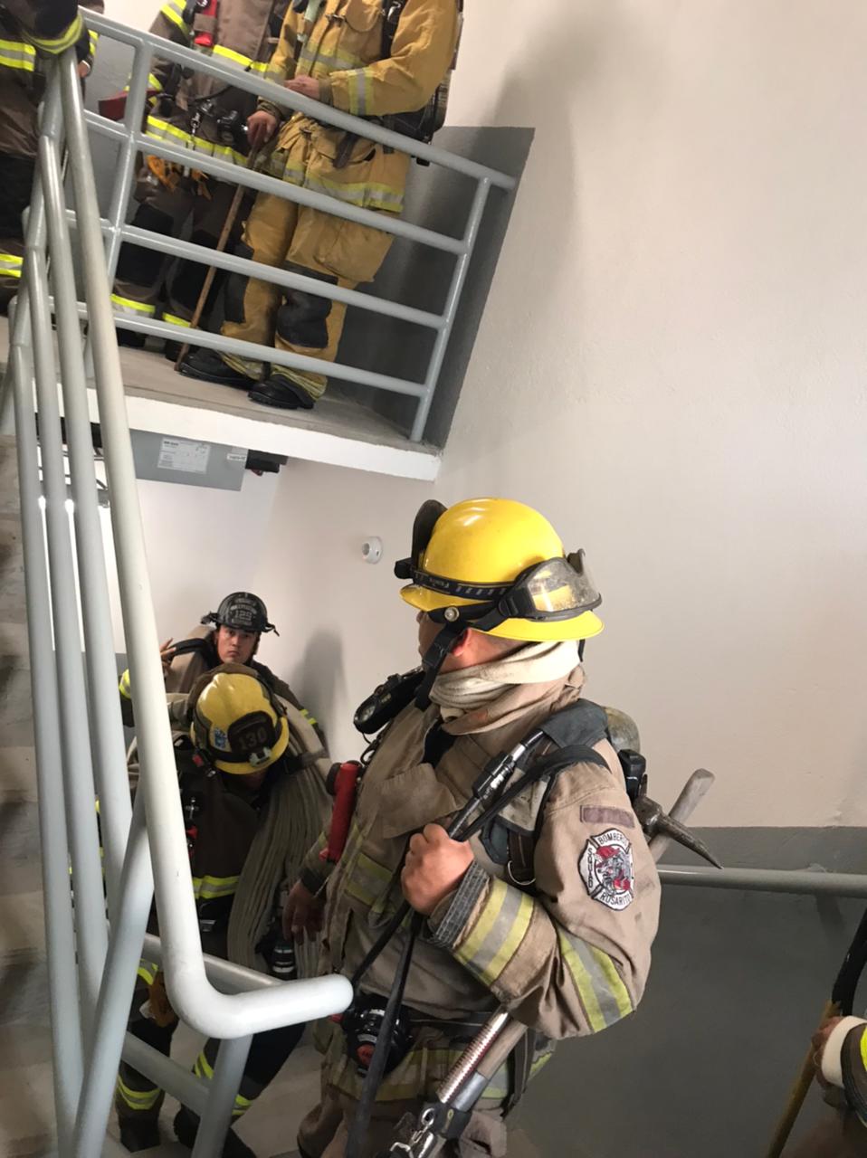 “También trabajamos sobre el tirado de manguera, subir y bajar escaleras, la condición física que debemos tener para subir varios pisos, porque nosotros no usamos elevadores, siempre por escaleras, esa es la práctica”, expuso García Ames.
