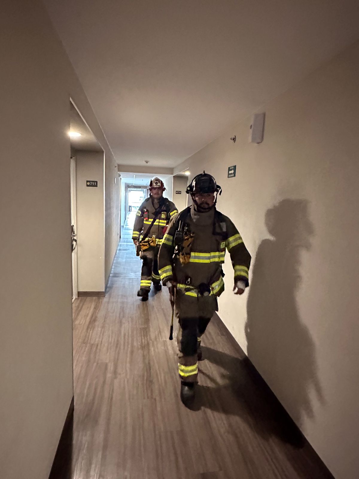 Playas de Rosarito, B.C., 18 de enero de 2024. La Secretaría de Seguridad Ciudadana, a través de la Dirección de Protección Civil y Bomberos, realiza prácticas operativas en el Hotel City Express, con la finalidad de mejorar tiempos de atención y estar preparado ante una posible contingencia.