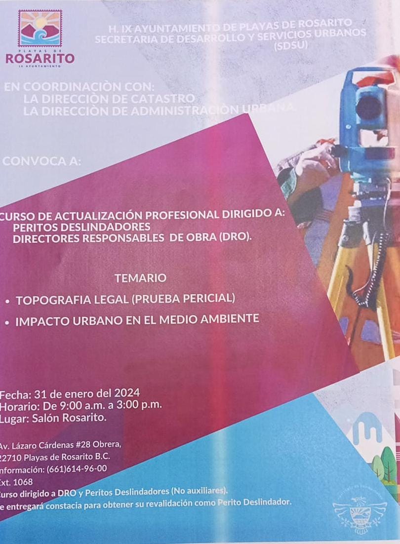Playas de Rosarito, 30 de enero de 2024.- El Gobierno de Araceli Brown Figueredo, invita a peritos deslindadores y directores responsables de obra (DRO) al curso de actualización profesional 2024.