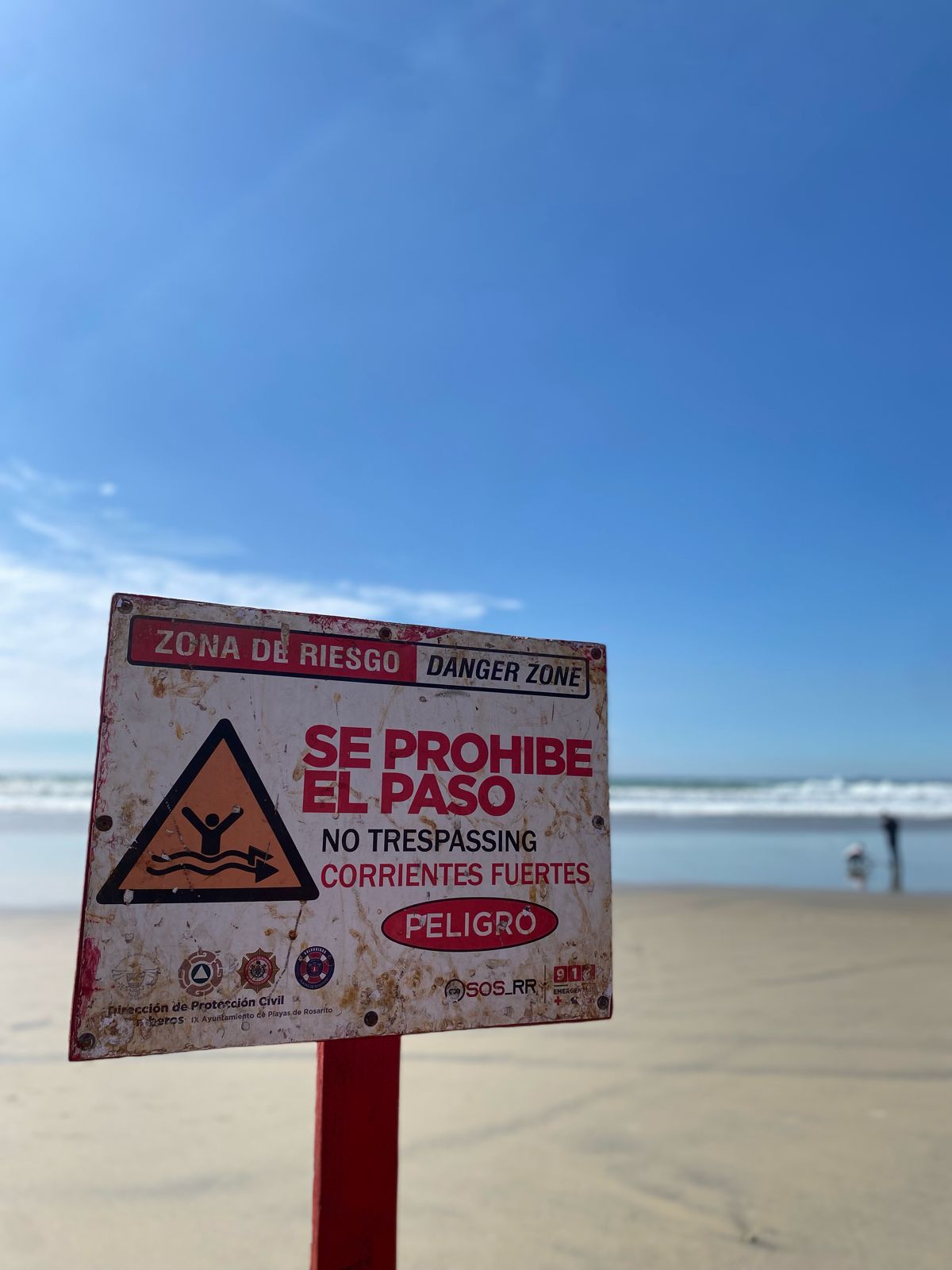 Playas de Rosarito, B.C. 19 de febrero de 2024. El Gobierno Municipal, a través de la Secretaría de Seguridad Ciudadana (SSC), informa a residentes y personas que visitan la ciudad, que se presenta un sistema de alto oleaje en las costas de la región, por lo que se recomienda no ingresar a la playa mientras persistan estas condiciones.