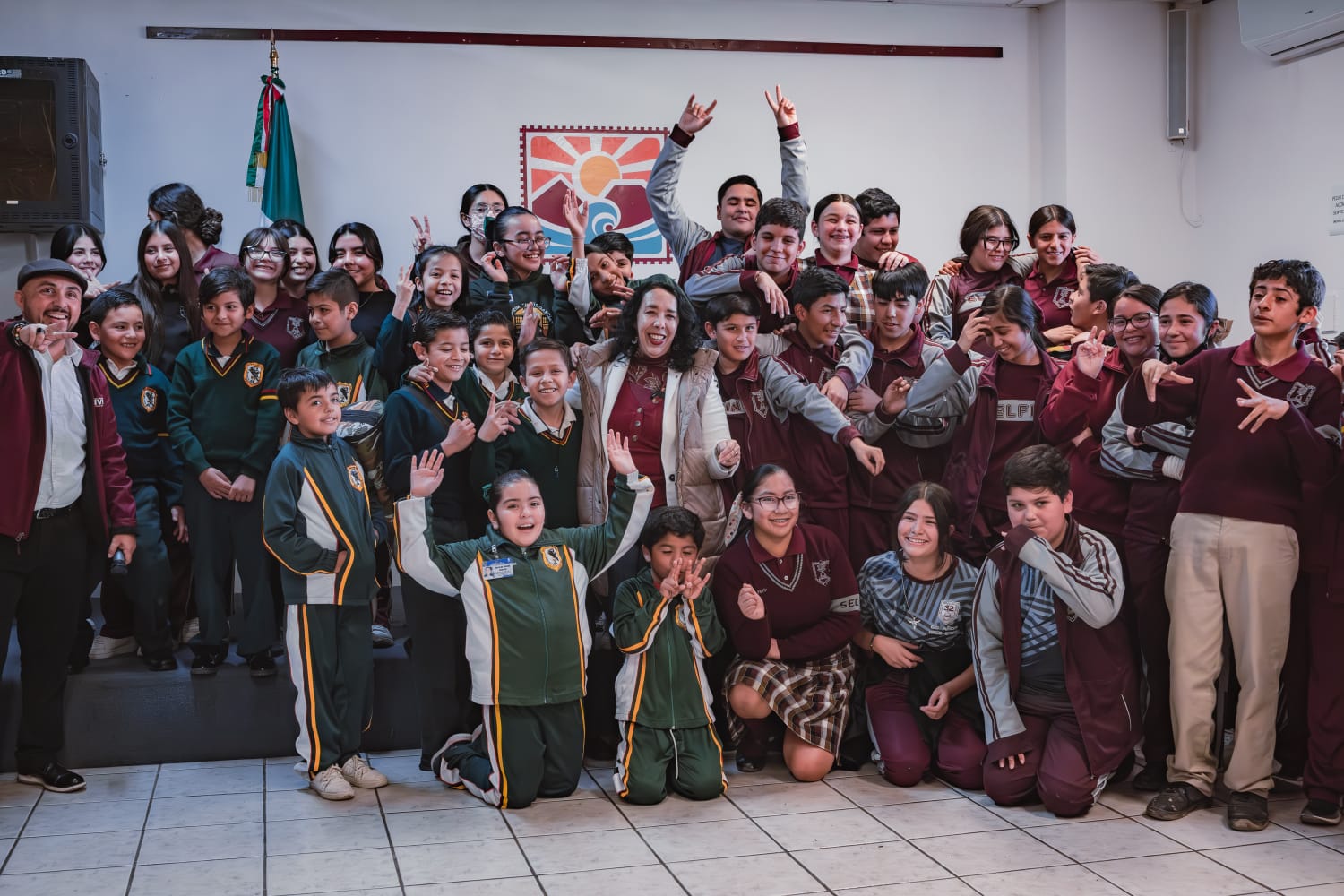 Playas de Rosarito, B.C. 21 de febrero de 2024.- La alcaldesa Araceli Brown Figueredo hizo entrega de equipo complementario a Escolta de Bandera y Bandas de Guerra de la primaria Jesús García y secundaria No.32 Abraham Lincoln, que representarán al Quinto Municipio en el concurso estatal y en el Nacional que se realizará en la Ciudad de México.