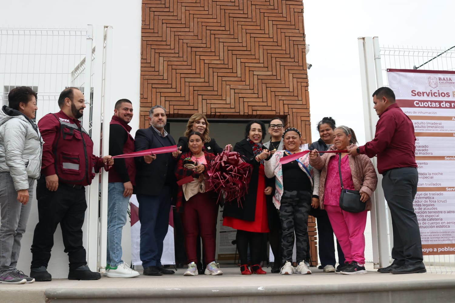 Playas de Rosarito, B. C., 27 de febrero de 2024. El Gobierno de la presidente municipal, Araceli Brown Figueredo, destinó más de 16 millones de pesos para la construcción de los velatorios del DIF en la colonia Ejido Mazatlán, instalaciones que se inauguraron en compañía de la presidenta del patronato DIF Estatal, Mavis Olmeda García.