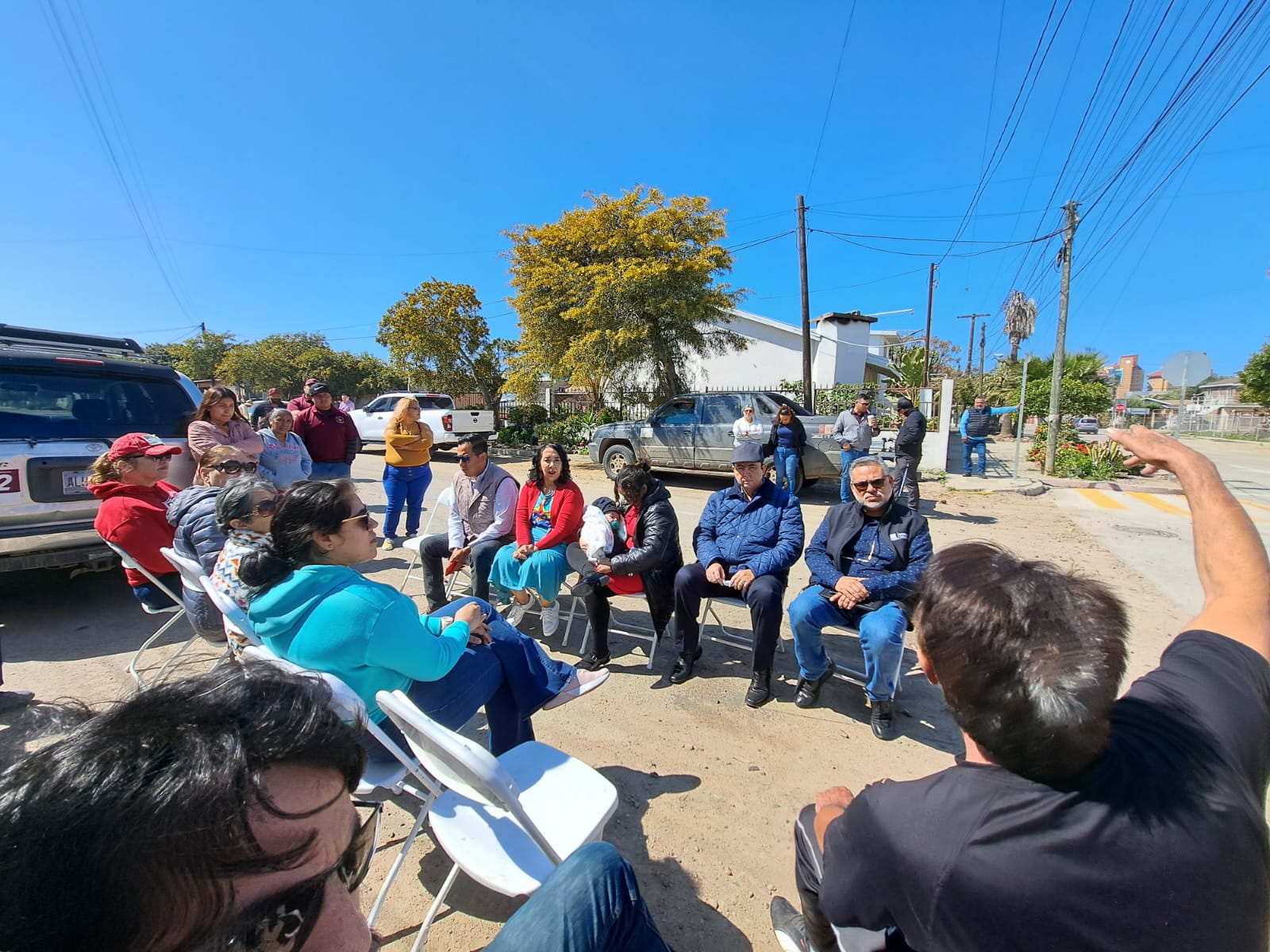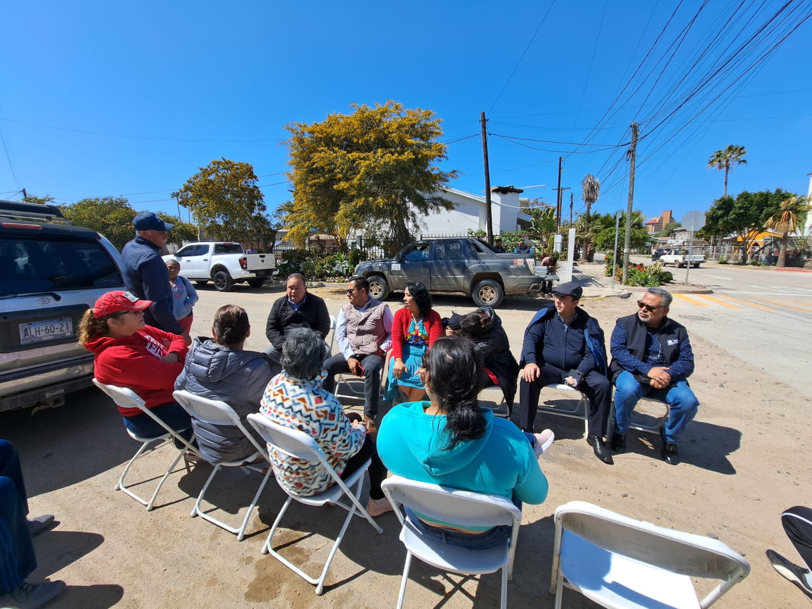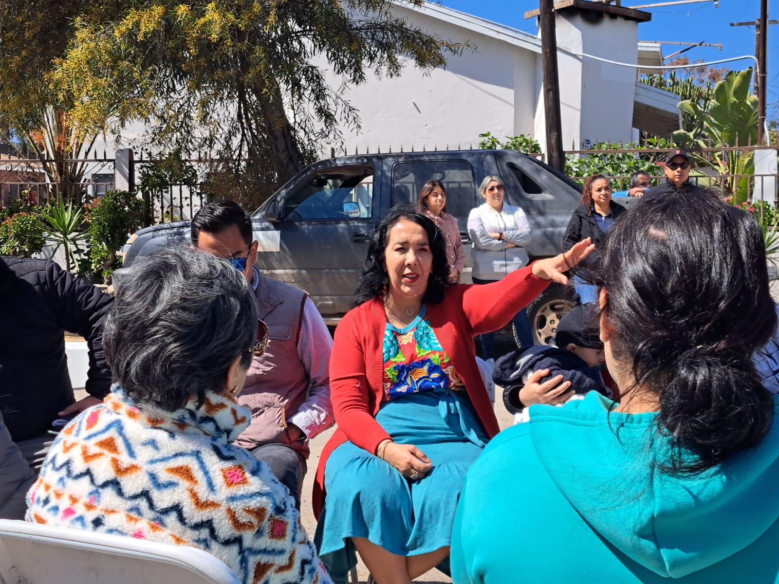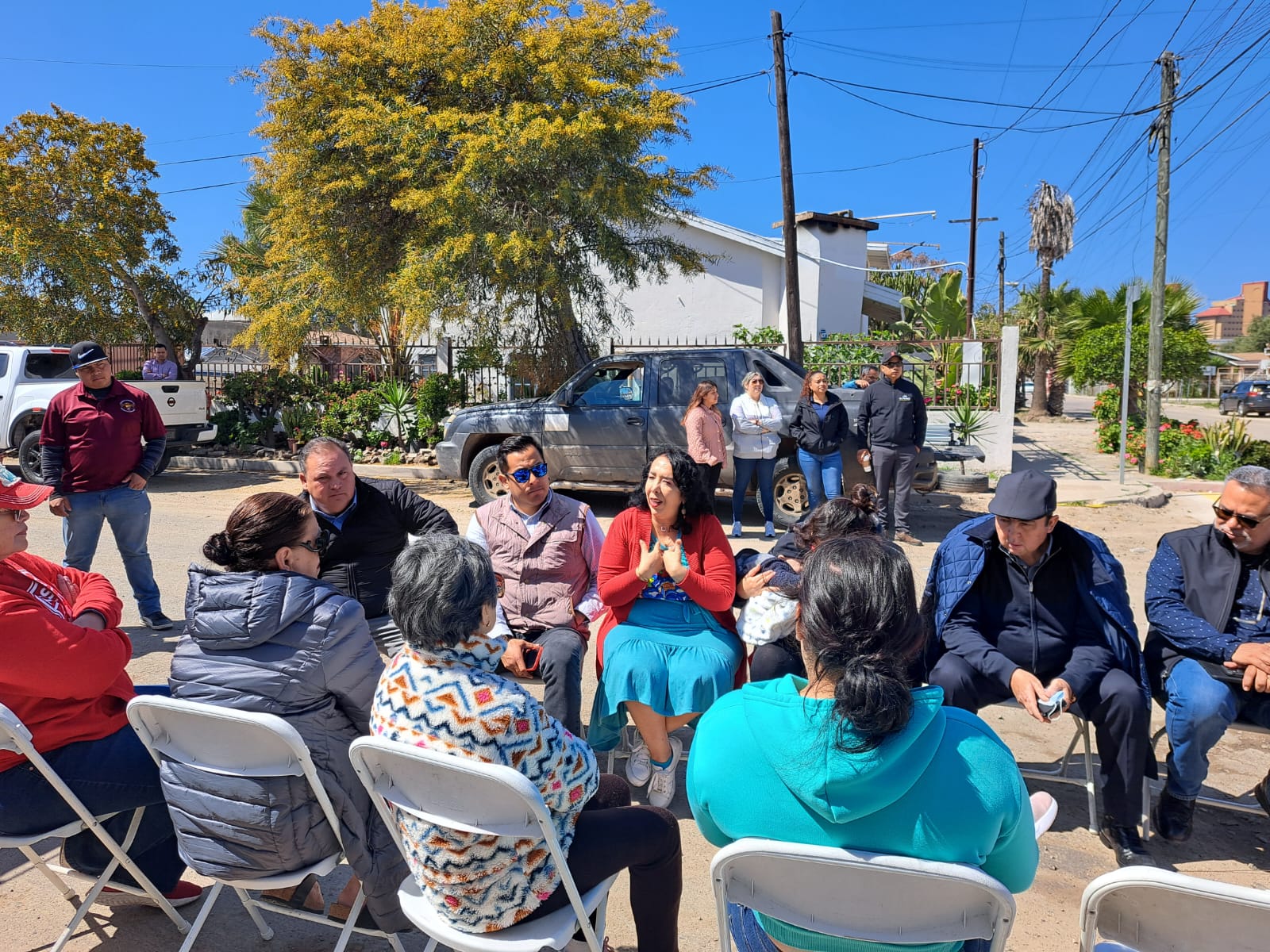 Playas de Rosarito, B.C. 7 de abril de 2023.- La alcaldesa, Araceli Brown Figueredo, acompañada de integrantes del gabinete municipal se reunió con vecinos de la colonia Magisterial, con la finalidad de disipar dudas sobre la apertura del Puente Vehicular; obra que representa la interconexión entre varias colonias y a la vez, un detonante económico para las familias comerciantes.