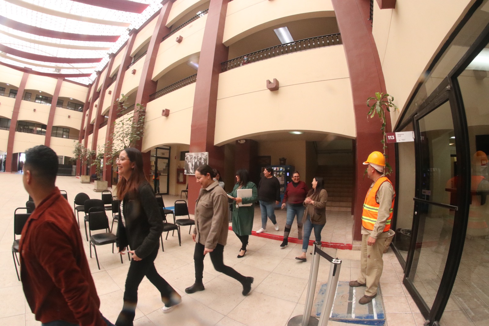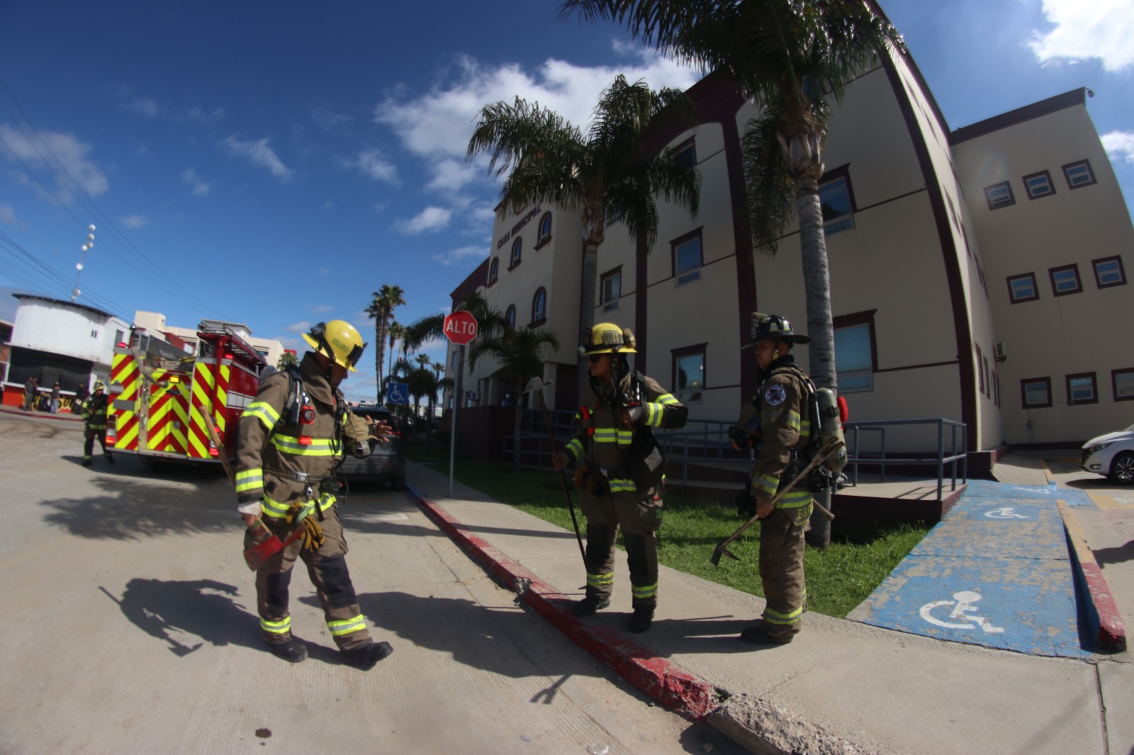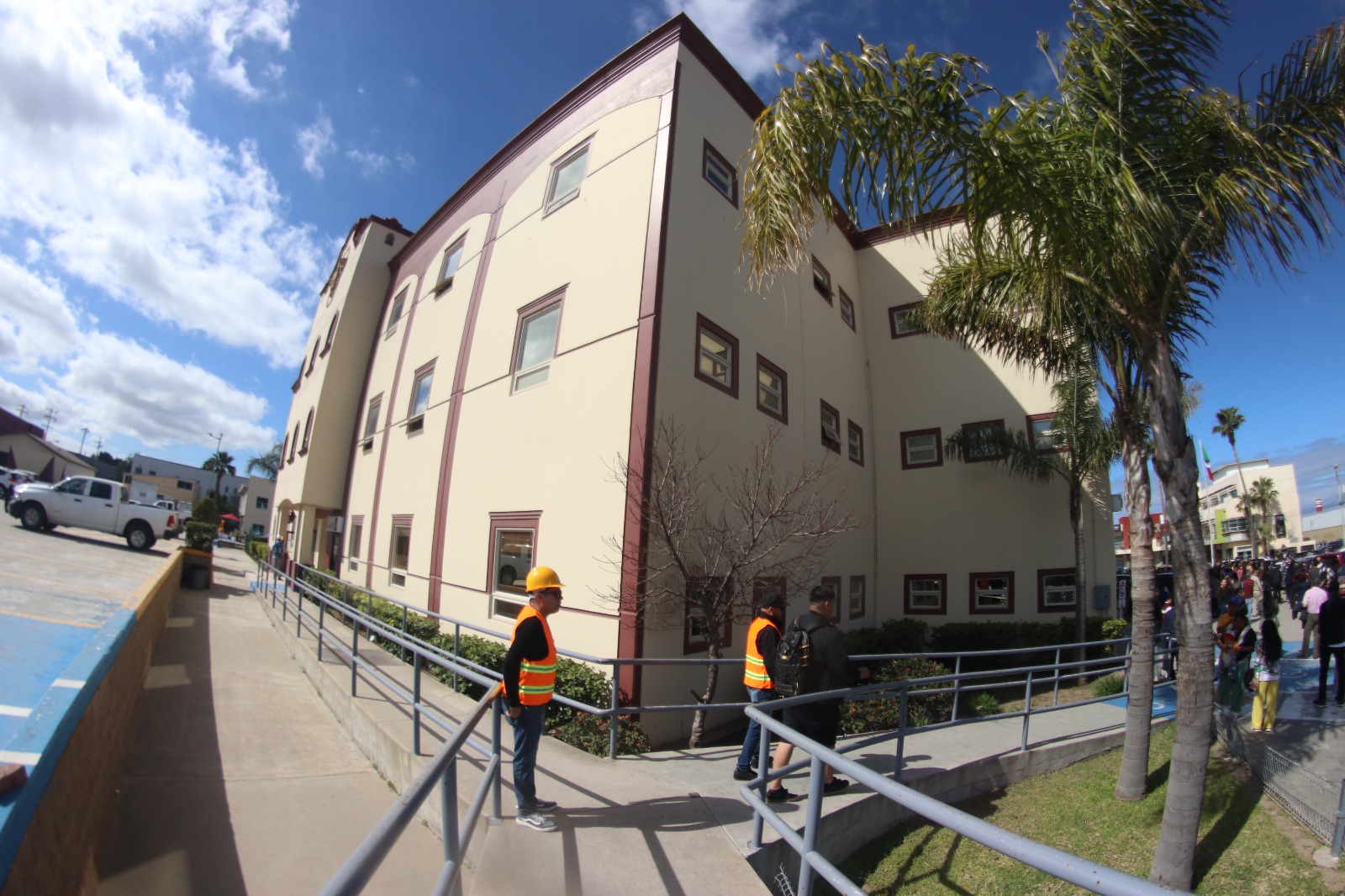 Playas de Rosarito, B.C. 4 de abril de 2024. En un tiempo de cuatro minutos más de 400 servidores públicos y ciudadanos, desalojaron las instalaciones de la Casa Municipal y el DIF al activarse en punto de las 10:00 horas la alerta sísmica, como parte del Macro Simulacro Estatal de Sismo 2024.