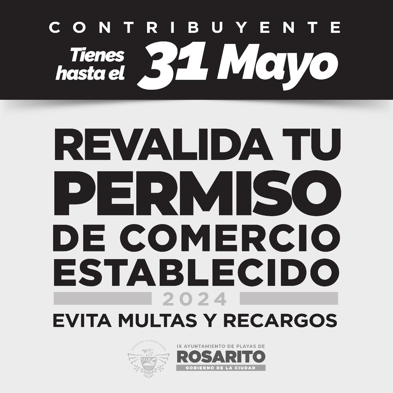 Playas de Rosarito, B.C. 20 de mayo de 2024.- El Gobierno Municipal, a través de la Recaudación de Rentas Municipal, hace un llamado a comerciantes dueños de negocios a realizar su trámite de revalidación de permisos de operación 2024.