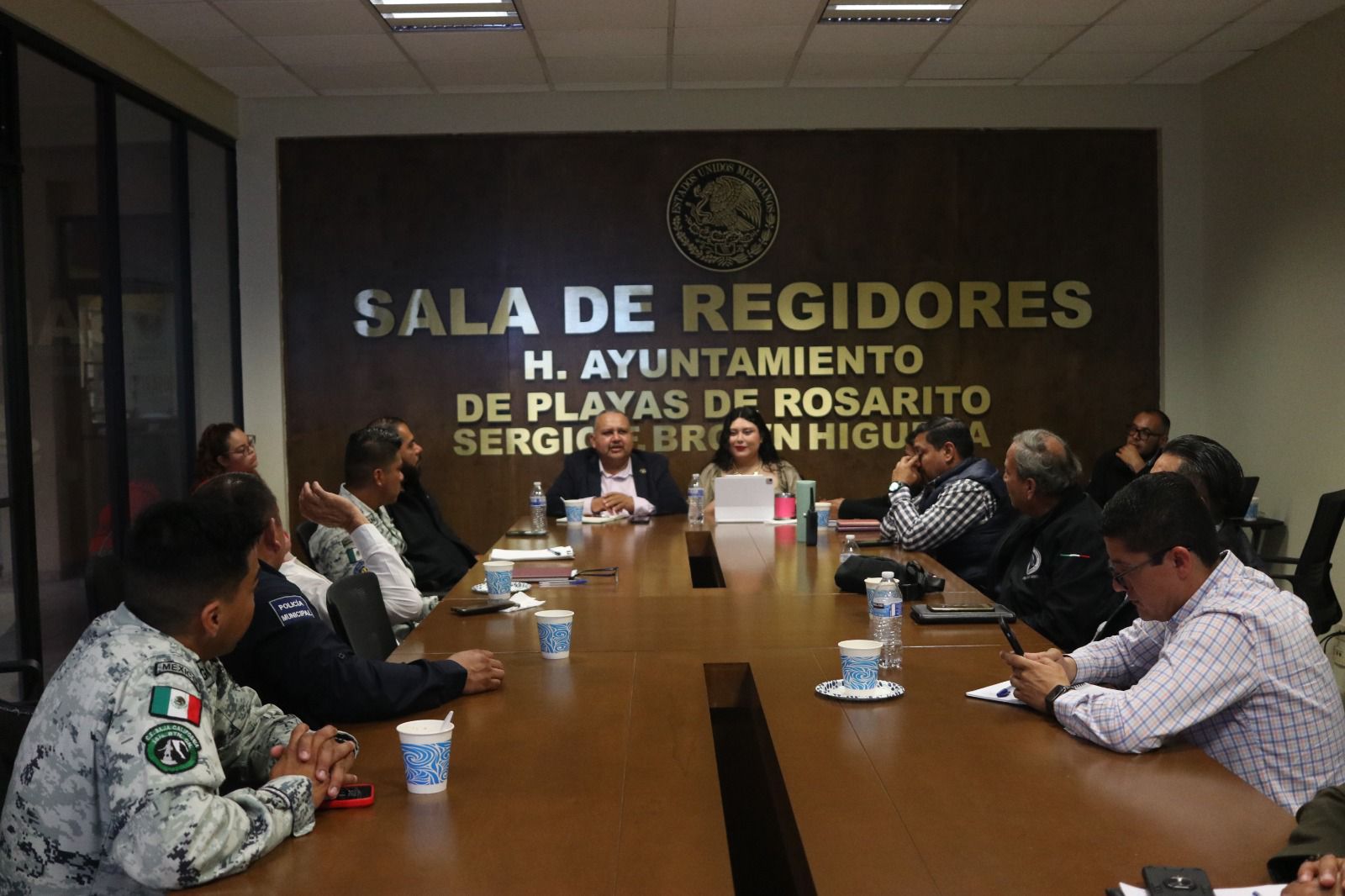 La reunión se llevó a cabo en la Casa Municipal de Playas de Rosarito y contó con la presencia de titulares y representantes de la Secretaría de la Defensa Nacional (Sedena), la Secretaría de Marina (Semar), la Guardia Nacional, el Centro Nacional de Inteligencia, la Fiscalía General del Estado, la Guardia Estatal y la Secretaría de Seguridad Ciudadana de Playas de Rosarito.