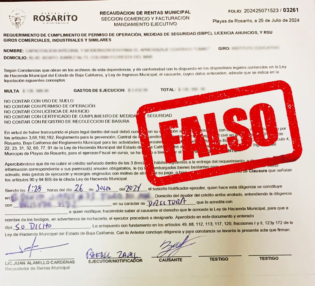 Playas de Rosarito, B.C., 29 de julio de 2024.- El Gobierno Municipal de Araceli Brown Figueredo, alerta a la ciudadanía sobre una nueva modalidad de fraude en la que personas se hacen pasar por notificadores de la Dirección de Recaudación de Rentas.