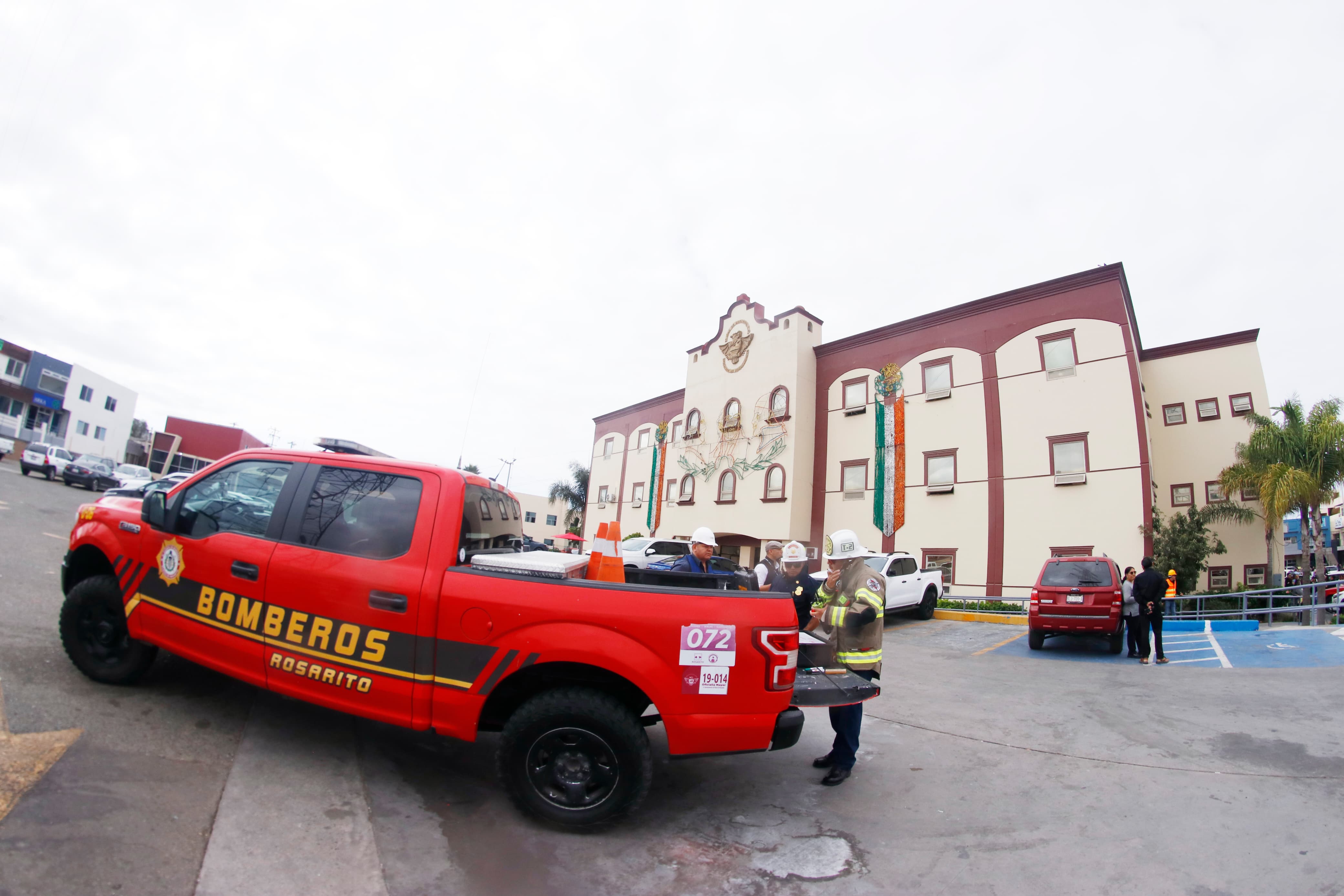 Playas de Rosarito, B.C. 19 de septiembre de 2024.- En el marco del Día Nacional de Protección Civil, el Gobierno de la Ciudad, encabezado por la alcaldesa Alejandra Padilla Orozco, se sumó al Simulacro Nacional de Sismo. A las 10:00 horas, la alarma sonó en edificios municipales, estatales y en el Hospital General, tanto empleados como ciudadanos evacuaron rápidamente. Bomberos arribaron al lugar para atender la emergencia simulada.