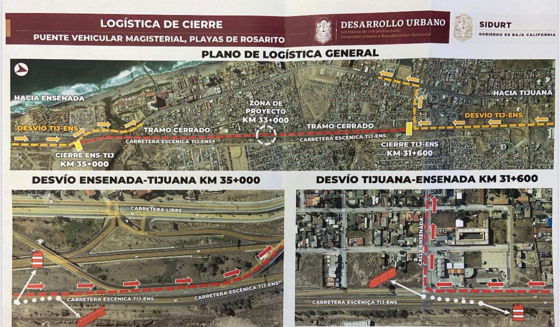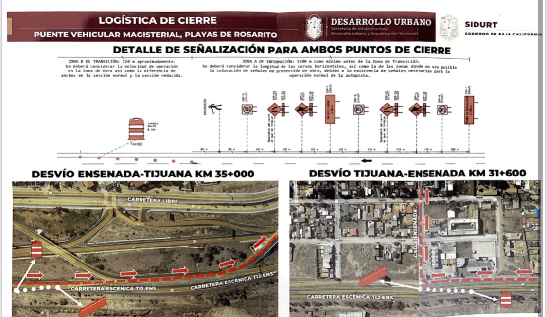 INFORMA GOBIERNO DE PLAYAS DE ROSARITO CIERRE PARCIAL DE LA CARRETERA ESCÉNICA POR TRABAJOS EN PUENTE VEHICULAR MAGISTERIAL