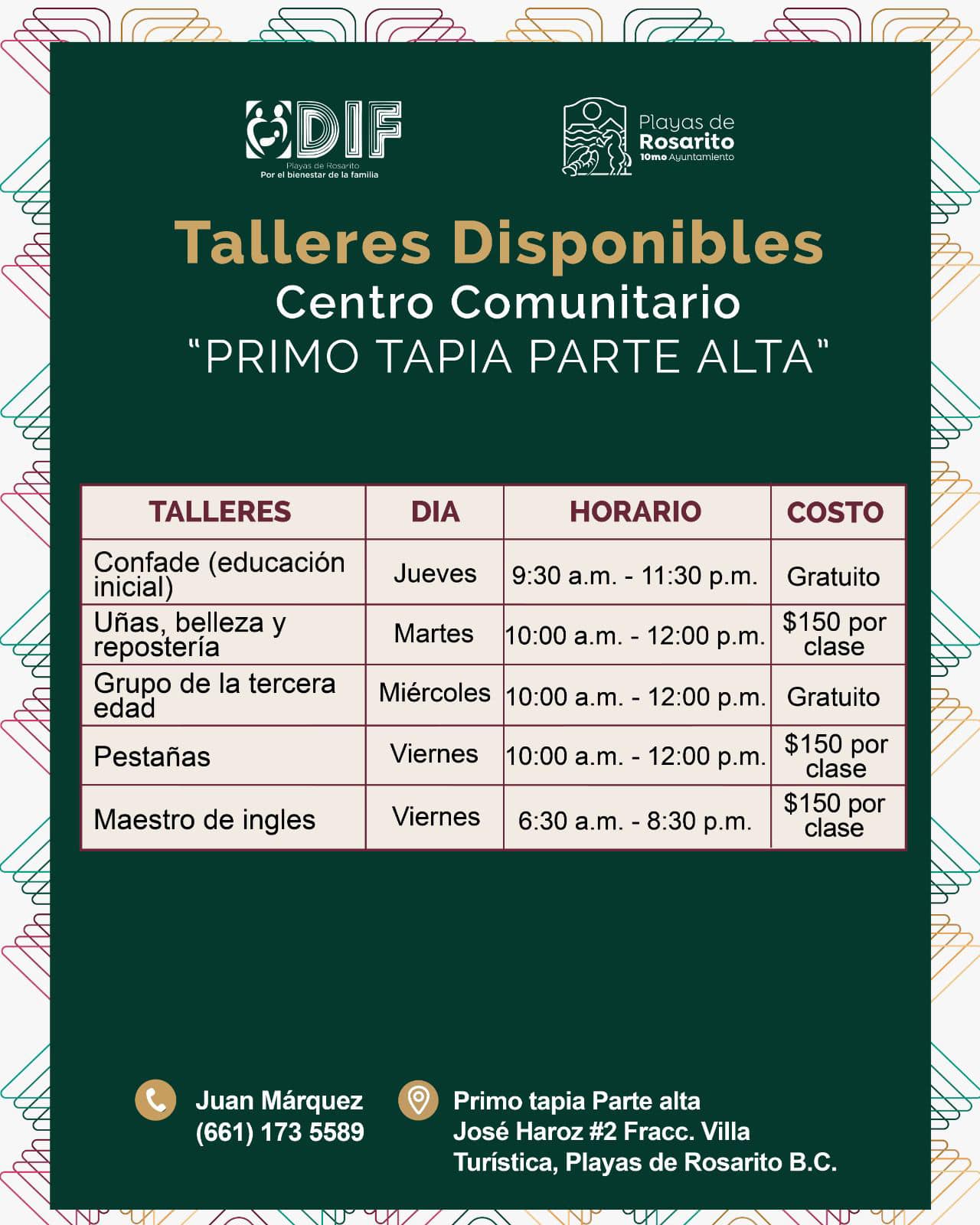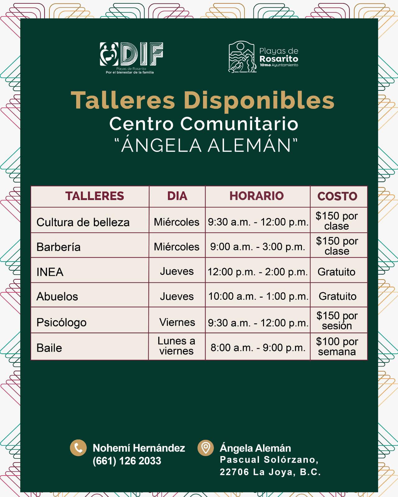 En los centros comunitarios de Playas de Rosarito encontrarás una amplia variedad de talleres diseñados para fortalecer el aprendizaje, el desarrollo personal y la convivencia comunitaria.