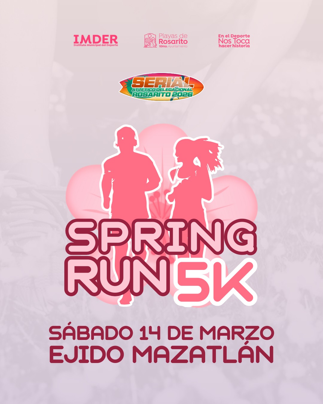 Nos veremos a partir de este sábado 14 de marzo en el Spring Run 5K, para vivir este serial que recorrerá nuestras delegaciones, fortaleciendo la activación física y el espíritu deportivo de Rosarito. Sé parte de este reto, sumemos energía, disciplina y pasión en cada fecha. ¡Cuando corremos juntos, hacemos historia!